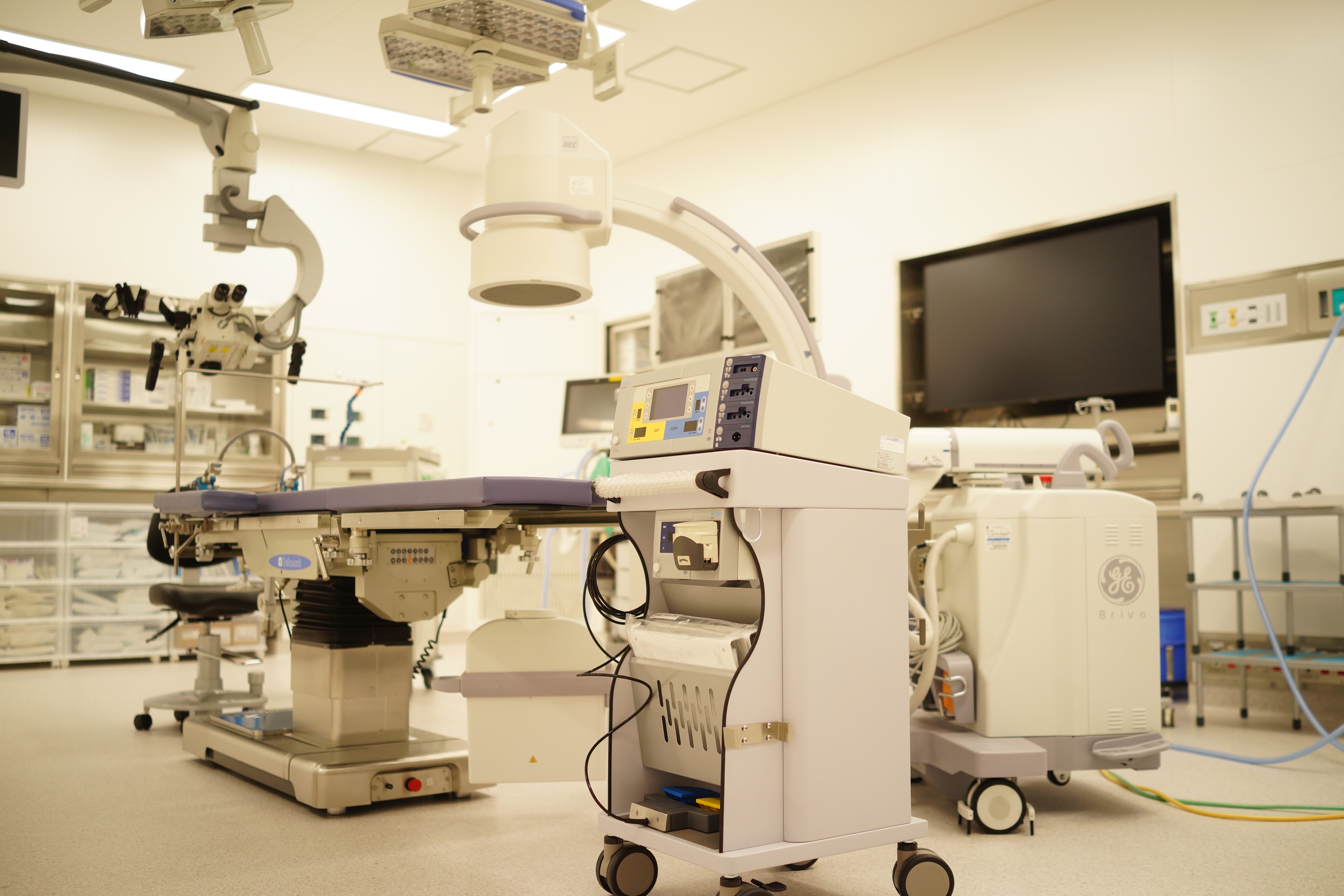 当院では痛みや痺れを引き起こす椎間板ヘルニアに対して顕微鏡下での低侵襲な摘出術を行います。顕微鏡下の手術では内視鏡による摘出術(1−2cmの皮膚切開)より若干大きな皮膚切開(3−4cm程度)となりますが、より短時間での治療が可能です。一椎間あたりの手術時間は約40分、入院期間は7~10日です。
